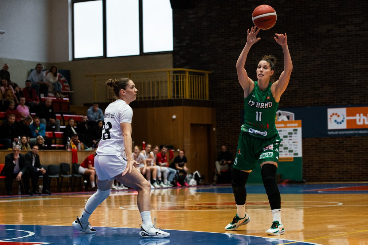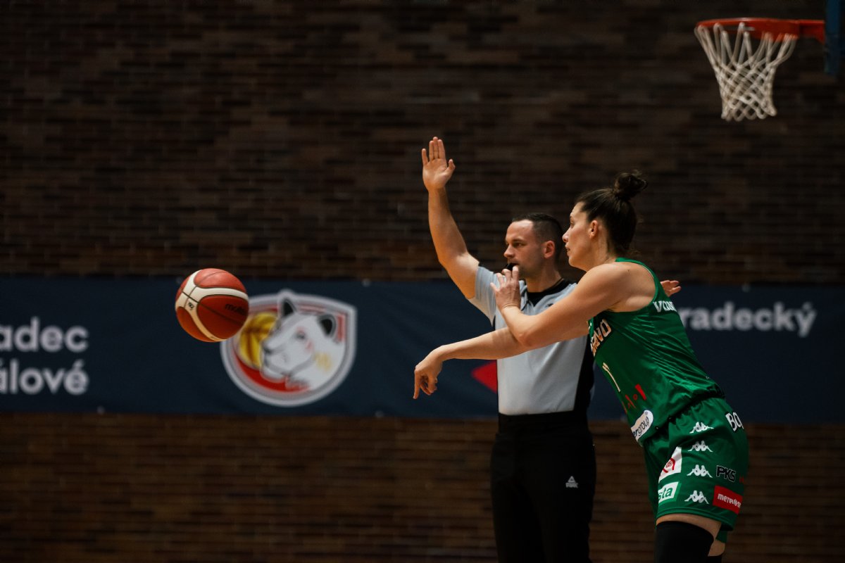 Hradec Králové - KP Brno 74:81 (27:29, 43:45, 57:62)Body: Martišková 18, Brabencová 15, Hálová 13 - Žílová 16, Swartz 13, A. Kopecká 12, E. Kopecká 11, Hibalová 9 ( trojky 4/3), Vondráčková 5, Calvert, Galíčková a Svatoňová 4, Hynková 3, fauly: 24:26, TH: 30/19:21/25, trojky: 5:12, rozhodčí Syrovátka, Kovačovič, Podhůrský, 200 diváků vč. hlasité skupiny fanoušků z Brna.